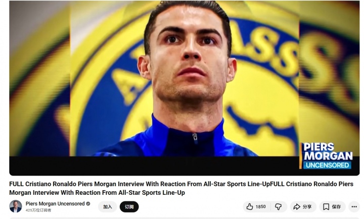 11月08日讯 C罗袭取摩根采访第三部分在Channel 5直播,莫得C罗采访的新本色。而摩根youtube频谈也更新,标题为齐全版采访本色,时长为2小时18分钟。