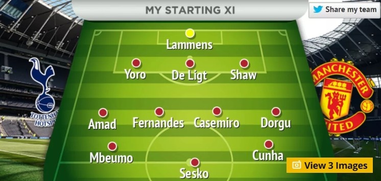 中场:阿玛德、卡塞米罗、布鲁诺-费尔南德斯、多尔古