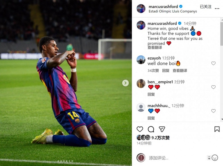 加盟巴萨以来6球7助!拉什福德晒照庆祝到手:感谢全球的复古