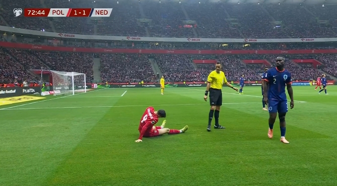 11月15日讯 波兰vs荷兰第74分钟,莱万在争抢时受伤,径直坐下了,但暂时莫得换东谈主。