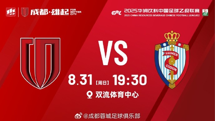 比赛日 中乙第24轮 成王人蓉城B队vs海门珂缔缘 8月31日 19:30