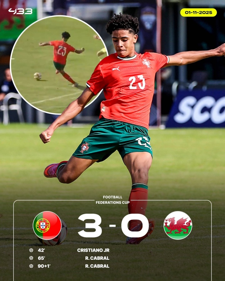 11月1日的U16勾通会杯锦标赛,葡萄牙U16以3-0驯顺威尔士U16,比赛中15岁的迷你罗打入一球。