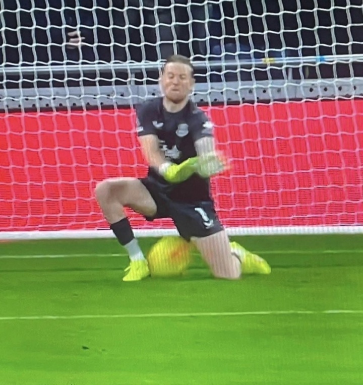 英超第13轮,埃弗顿主场1-4惨败纽卡斯尔联。比赛第25分钟,皮克福德扑救迤逦导致丢球。