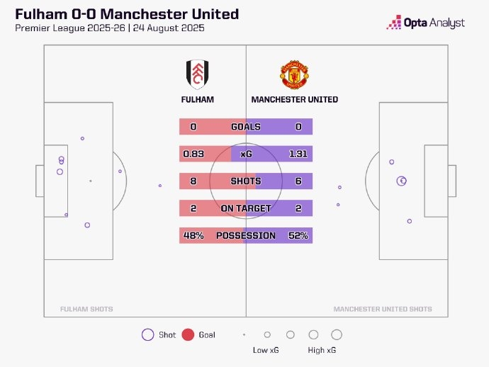 08月25日讯 据opta数据统计,上赛季以来,五大联赛中惟有热那亚(30次)在上半场交白卷的次数比曼联(29次)多。