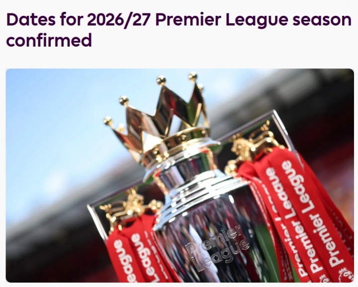 11月21日讯 英超官方音讯,下赛季英超联赛将于2026年8月22日运转,2027年5月30日为止,据悉这是英超历史最晚的开赛日历。