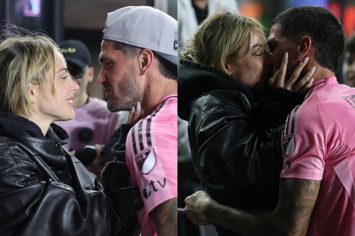 赛后,德保罗来到场边与独身妻拥抱庆祝,佳东说念主献上香吻。
