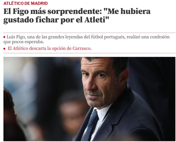 好家伙!菲戈坦荡:除了皇萨我原来还念念去马竞,在那踢球让东谈主振奋