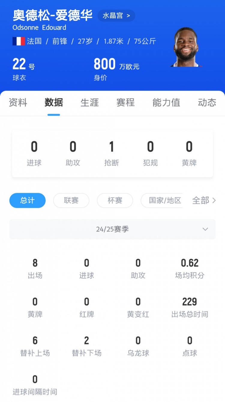 上赛季联赛仅出场两次,太空:水晶宫陈说先锋爱德华找下家