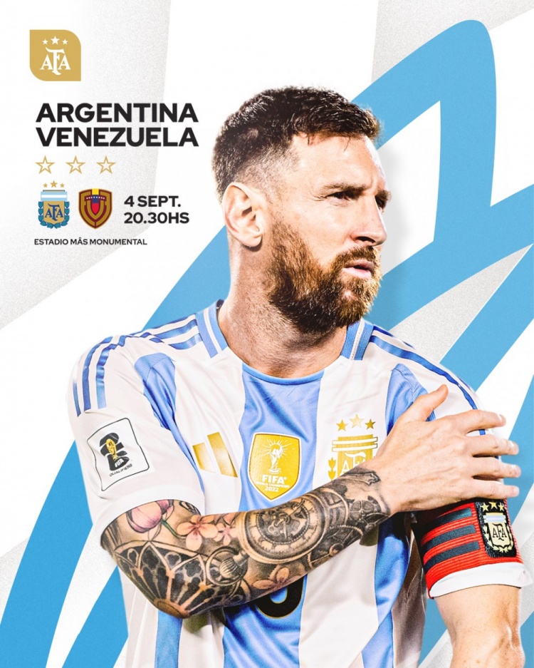 阿根廷队发布对阵委内瑞拉海报:队长梅西单东谈主出镜